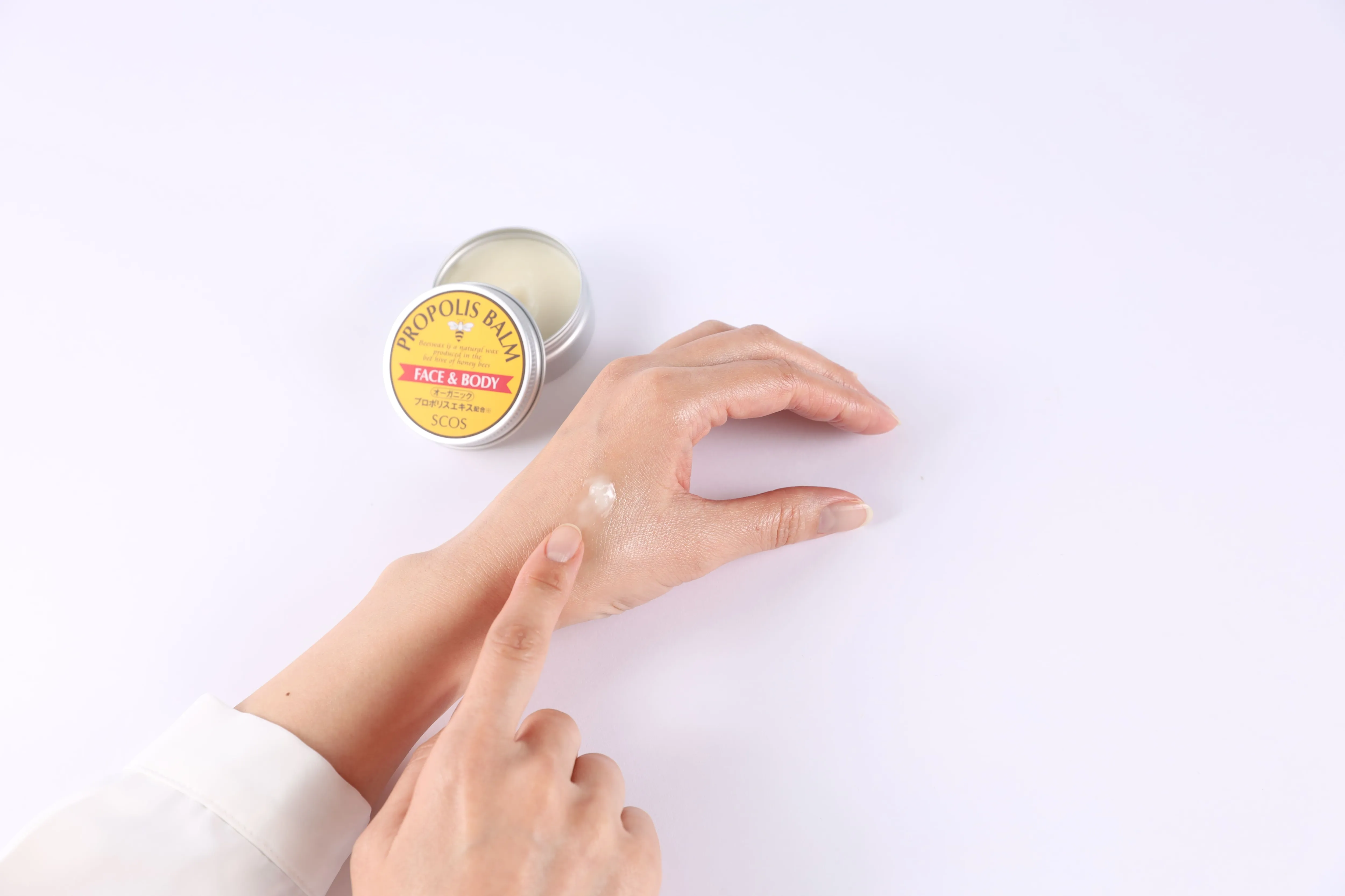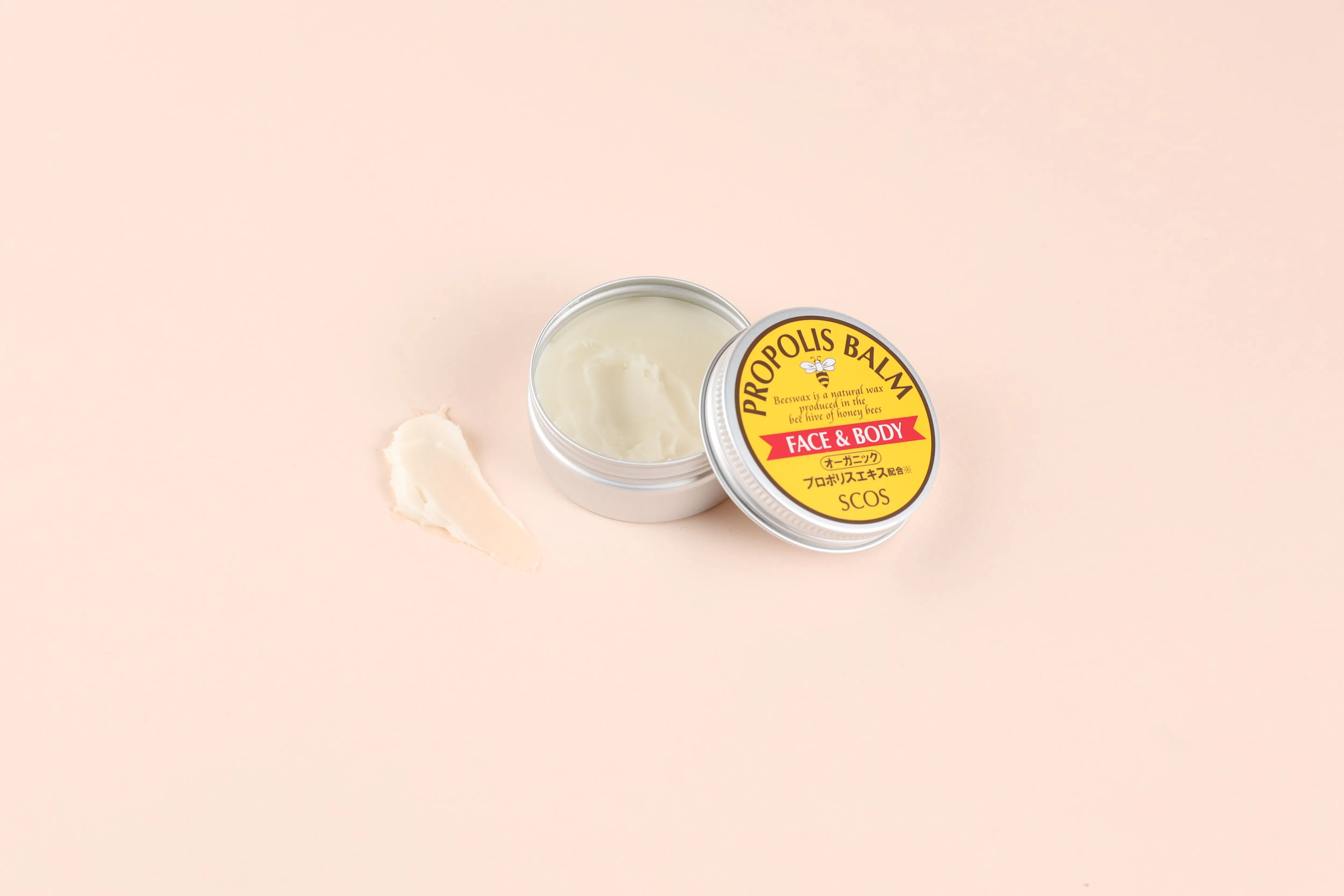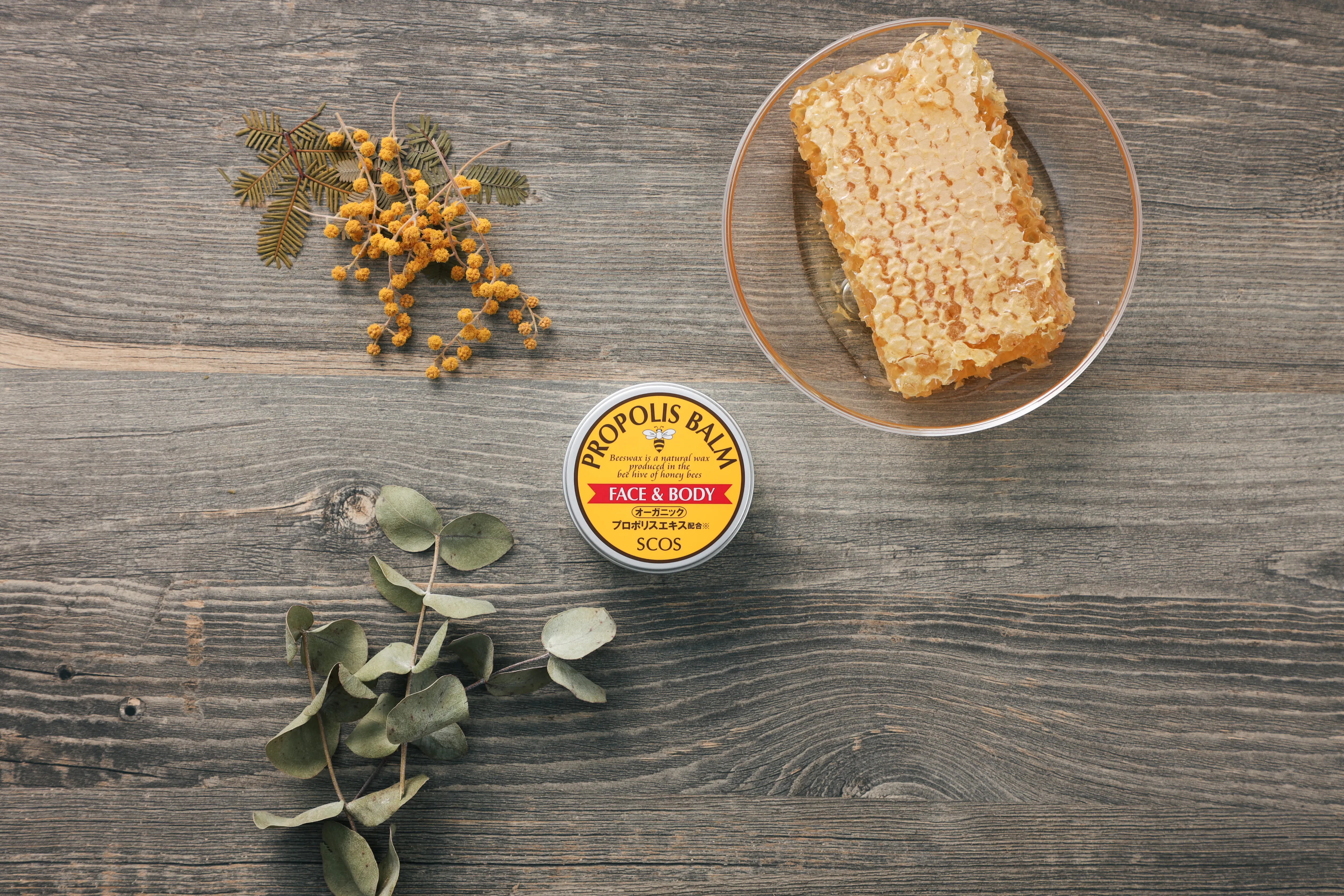 肌の乾燥を防ぐ天然ミツロウにブラジル産のオーガニックプロポリスを練り込み、さらにオーガニックローヤルゼリーや天然ビタミンE、天然アロマを配合した100%ナチュラル処方。プロポリスとローヤルゼリーのうるおいが、お肌に働きかけます。お顔はもちろん、指先からボディ、リップケアまで全身のお手入れにお使いください。